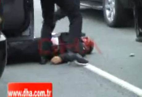 Μετά την εκλογική συνάντηση οι διαδηλωτές άρχισαν να πετούν πέτρες στην αυτοκινητοπομπή του τούρκου πρωθυπουργού ενώ οι αστυνομικοί πυροβολούσαν στον αέρα για εκφοβισμό των διαδηλωτών, μεταδίδει το πρακτορείο Ανατολή.