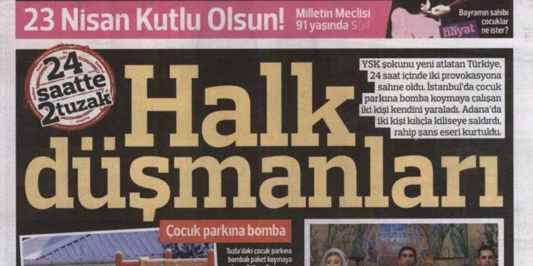 Η Τουρκική εφημερίδα έχει τίτλο » Οι εχθροί του λαού»
