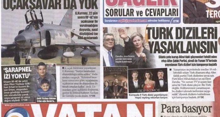 Επίθεση κατά της Χρυσής Αυγής εξαπολύει η τουρκική εφημερίδα Vatan, επειδή η οργάνωση ζητεί την απαγόρευση των τουρκικων σειρών που πορβάλλονται στα ελληνικά τηλεοπτικά δίκτυα.