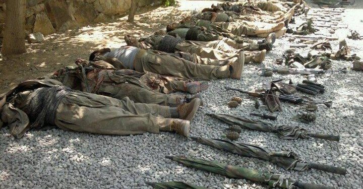 Η φωτογραφία δείχνει πτώματα Κούρδων ανταρτών μετά από μάχες με Τούρκους. Η λεπτομέρεια της φωτογραφίας είναι οι ομπρέλες παραλλαγής που βρέθηκαν στον εξοπλισμό τους. Είναι αυτές που τους επιτρέπουν να μην εντοπίζονται από θερμικές κάμερες, όπως γράφουν τα tourkikanea.gr