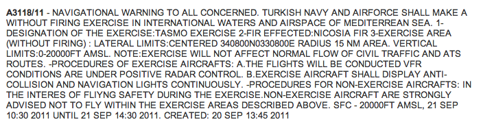 Το νταηλίκι της Τουρκίας χθες νότια της Κύπρου,συμπεριλαμβάνεται στο παιχνίδι επίδειξης λεονταρισμών της Άγκυρας. Δημοσιεύουμε και τη ΝΟΤΑΜ που έβγαλε. Τα τουρκικά μαχητικά δεν προσέγγισαν την εξέδρα της Noble Energy σε απόσταση μιρκότερη των 50 ναυτικών μιλίων.