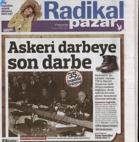 Σύμφωνα με την εφημερίδα Radikal που στο πρωτοσέλιδο της έχει τίτλο