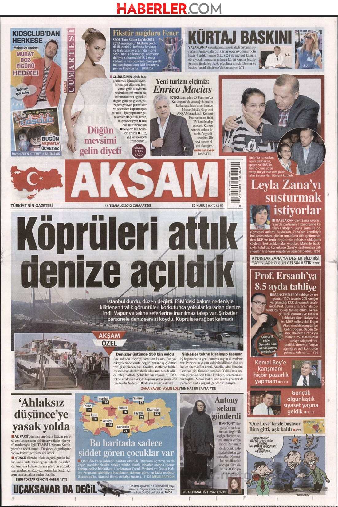 «Ρίξαμε τις γέφυρες και πήραμε τα καράβια» είναι ο τίτλος της Akşam που αναφέρει πως λόγων των έργων συντήρησης στις γέφυρες στο Βόσπορο ο κόσμος δεν αντέχει την κίνηση. » Γι’αυτό υπάρχει μεγάλη ζήτηση στα καράβια στο Βόσπορο και επίσης ακόμη και εταιρείες μεταφέρουν τους υπαλλήλους τους απο τη την Ερυωπαική ακτή στην Ασιατική με καράβια».
