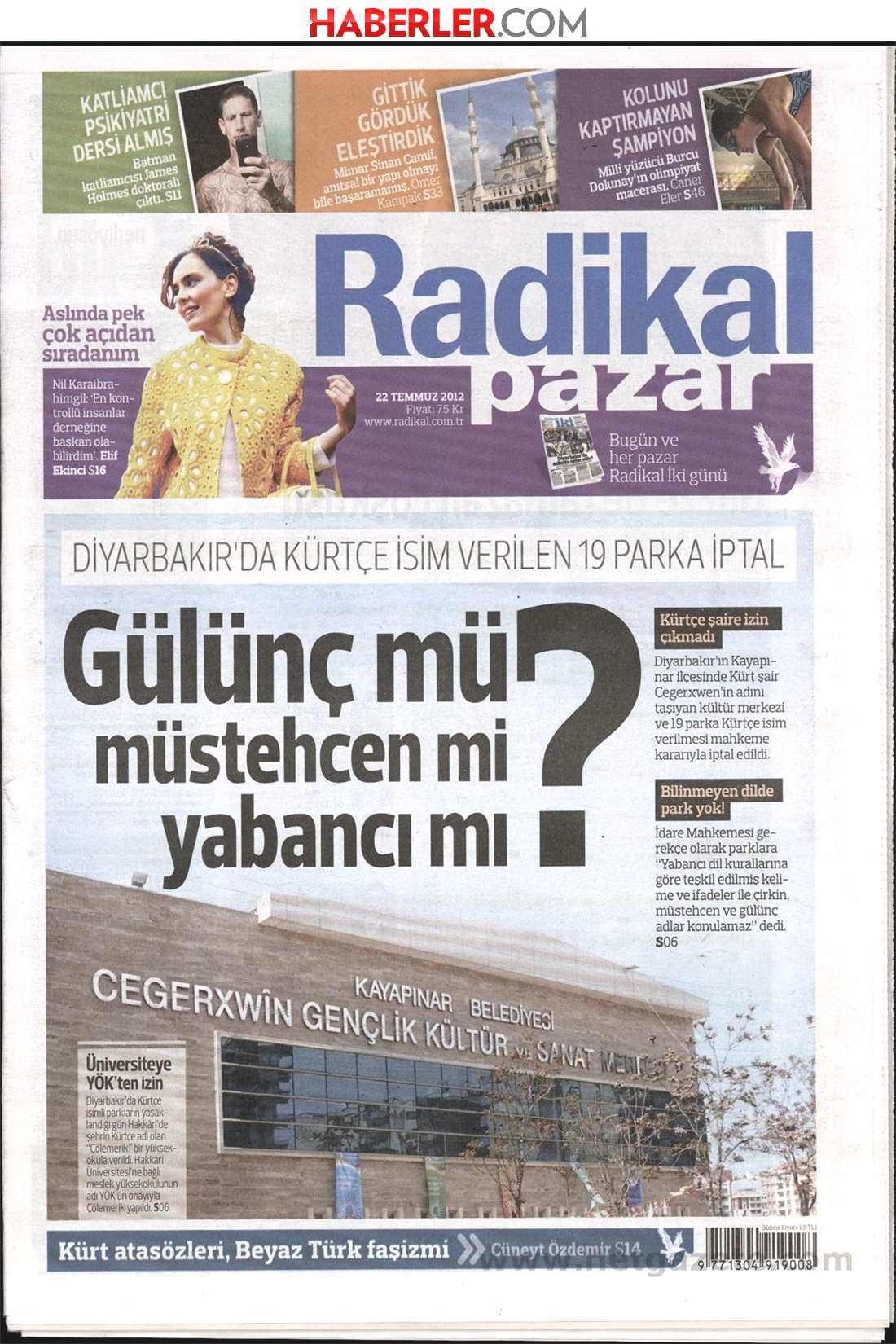 «Είναι αστείο, ντροπιαστικό, ξένο»; είναι ο τίτλος της Radikal που αναρωτιέται τους λόγους που οι τουρκικές αρχές απαγόρευσαν την απόφαση ονομασίας 19 πάρκων στο Ντιγιαρμπακίρ με κουρδικές ονομασίες. Οι τουρκικές αρχές ζήτησαν την άμεση αλλαγή του ονόματος αυτών των πάρκων και ζήτησαν να δοθούν τουρκικά ονόματα.
