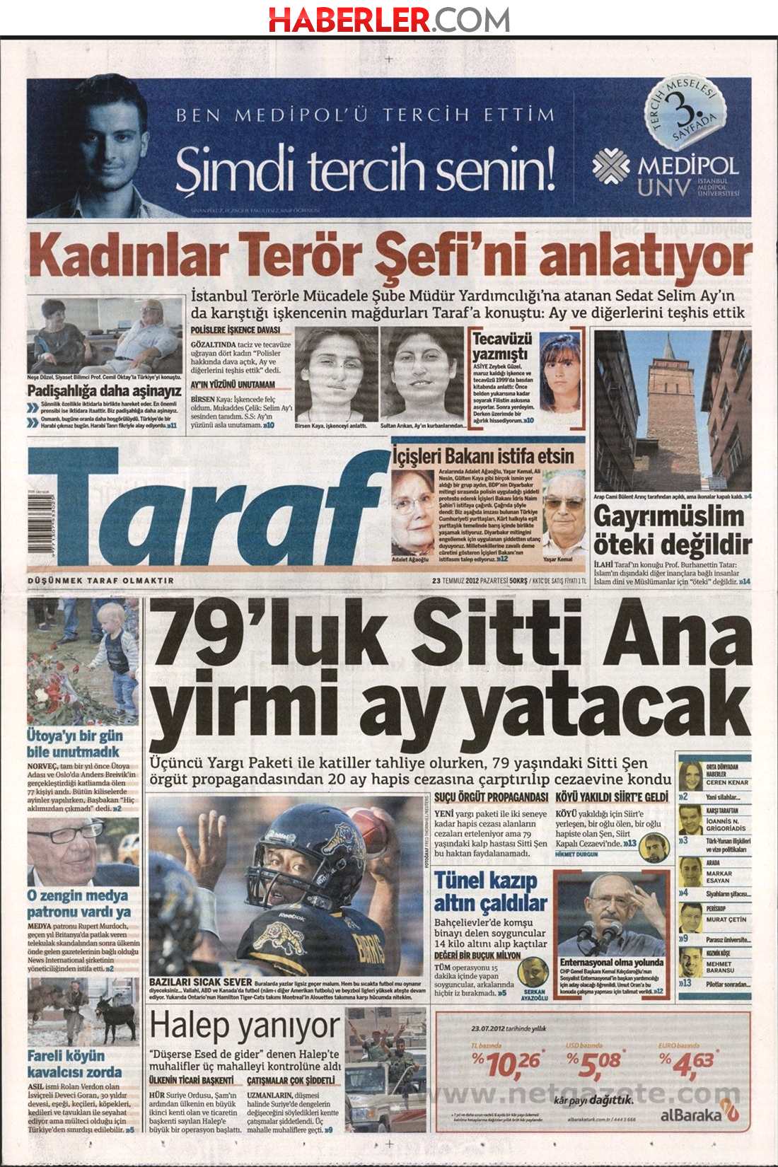« Η 79χρονη μητέρα Σίττι θα παραμείνει στη φυλακή για 20 μήνες» είναι ο τίτλος της Taraf. H τουρκική εφημερίδα αναφέρει πως με το τρίτο πακέτο δικαιοσύνης αποφυλακίζονται δεκάδες δολοφόνοι, όμως η 79 χρονη γυναίκα οδηγήθηκε στη φυλακή με την κατηγορία «προπαγάνδας υπερ τρομοκρατικής οργάνωσης και θα παραμείνει στη φυλακή επι 20 μήνες.»