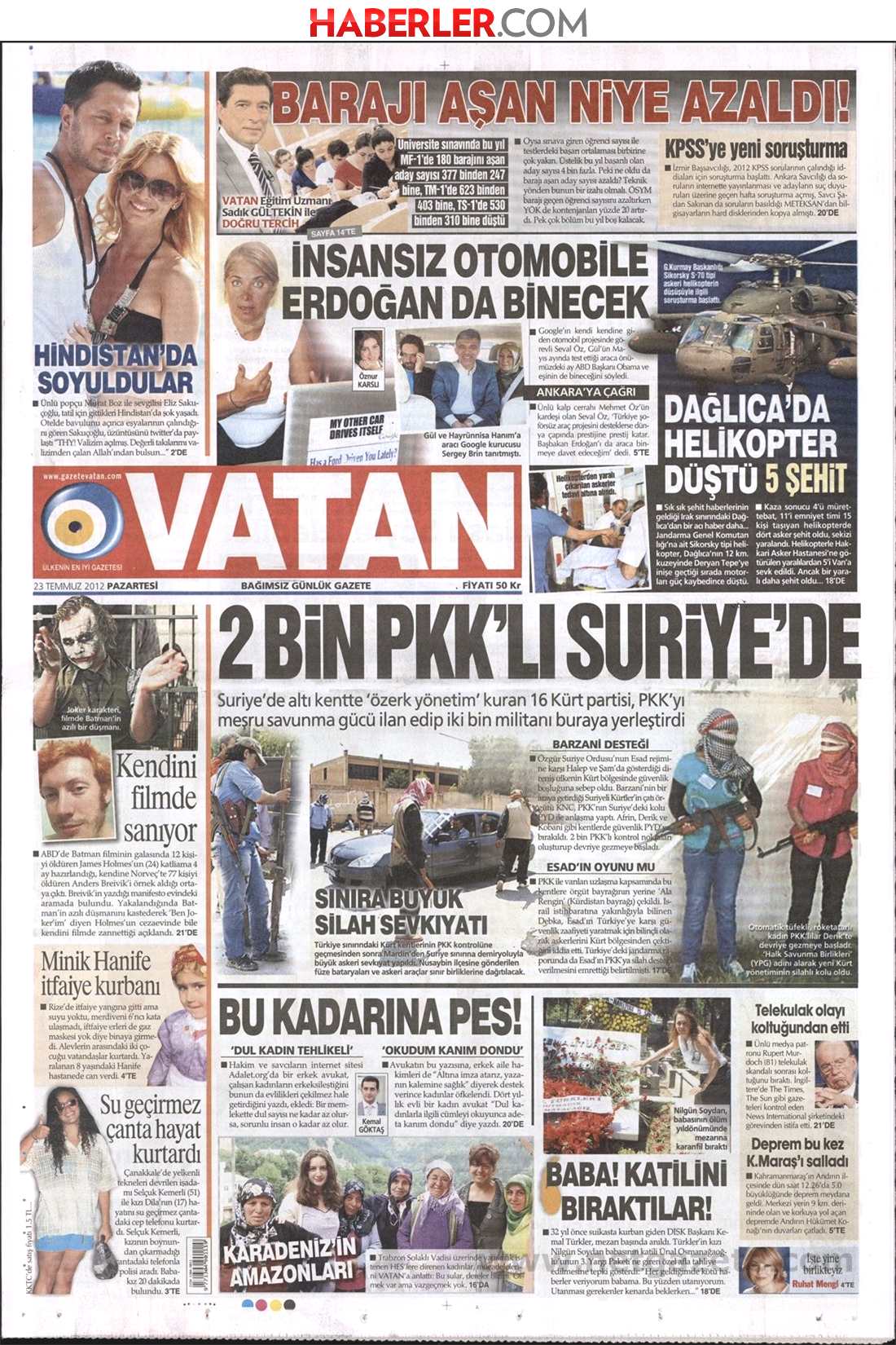 « Δυο χιλιάδες μέλη του PKK στη Συρία» είναι ο τίτλος της Vatan.H τουρκική εφημερίδα αναφέρει «πως 16 οργανώσεις των Κούρδων κήρυξαν αυτονομία σε 6 περιοχές της Συρίας και όρισαν το PKK ως επίσημη δύναμη αυτοάμυνας και τοποθετήθηκαν 2000 αντάρτες της Κουρδικής οργάνωσης στις περιοχές αυτές.».