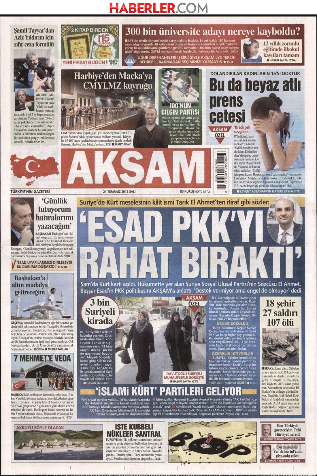 «Ο Άσαντ άφησε ελεύθερο το PKK» είναι ο τίτλος της Aksam και φιλοξενεί δηλώσεις του εκπροσώπους της αντιπολίτευσης της Συρίας ο οποίος ισχυρίζεται πως η Δαμασκός «δεν στηρίζει το PKK αλλά ούτε το εμποδίζει»
