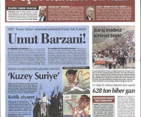 « Η ελπίδα είναι ο Μπαρζανί» είναι ο τίτλος της Cumhuriyet. H τουρκική εφημερίδα αναφέρει πως « το κυβερνών κόμμα Δικαιοσύνης και Ανάπτυξης τη λυση του θέματος της «Βόρειας Συρίας» τη ψάχνει στο «Βόρειο Ιράκ».