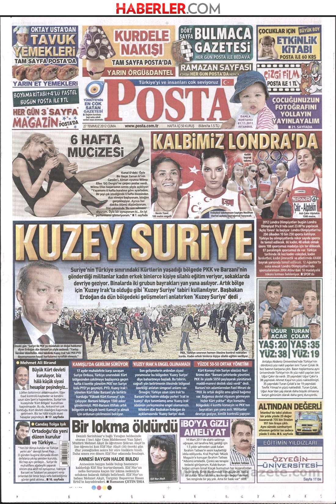 «Βόρεια Συρία» είναι ο τίτλος της Posta. H εφημερίδα αναφέρει πως « χιλιάδες Κούρδοι εκπαιδεύονται από το PKK στην περιοχή κοντά στα σύνορα με την Τουρκία. Η περιοχή ελέγχεται από τους Κούρδους. Η Τουρκία μετά τον όρο «¨Βόρειο Ιράκ» , χρησιμοποιεί πια τον όρο «Βόρεια Συρία»