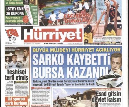 « Ο Σαρκοζί έχασε η Προύσα κέρδισε» είναι ο τίτλος της Hürriyet. H τουρκική εφημερίδα αναφέρει πως ο πρώην πρόεδρος της Γαλλίας Σαρκοζί ήταν αντίθετος με την παραγωγής του νέου Renault Clio και στο εργοστάσιο της Τουρκίας. Όμως η Hürriyet γράφει πως το εργοστάσιο της Προύσας πήρε και το Clio όμως και το νέο μοντέλο της Renault Sports Tourer.