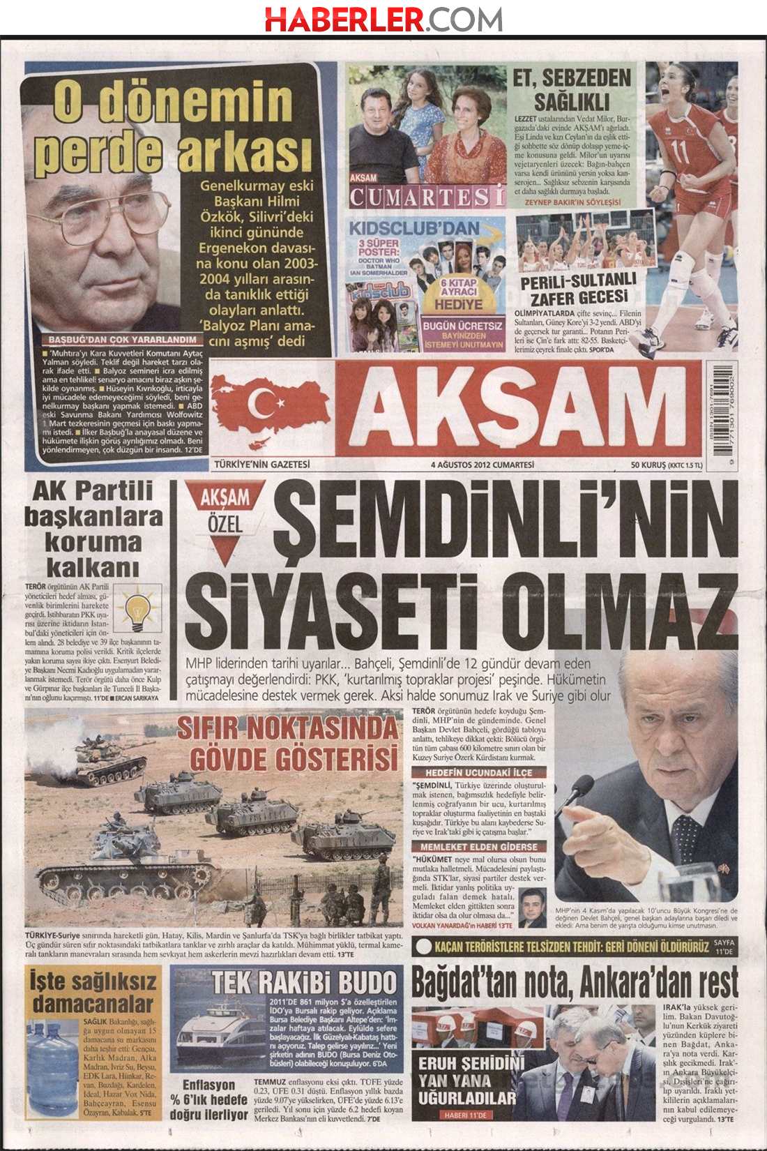 «Στο θέμα Σεμντίνλι δεν γίνεται πολιτική διαμάχη» είναι ο τίτλος της Akşam η οποία φιλοξενεί δηλώσεις του ηγέτη του κόμματος Εθνικιστικής Δράσης Ντεβλέτ Μπαχτσελί. «Το PKK έχει ως στόχο της προσπάθειες ανάκτησης εδαφών πρέπει να στηρίξουμε την κυβέρνηση. Σε αντίθετη περίπτωση το τέλος μας θα είναι σαν το Ιράκ και τη Συρία» δηλώνει ο Μπαχτσελί.