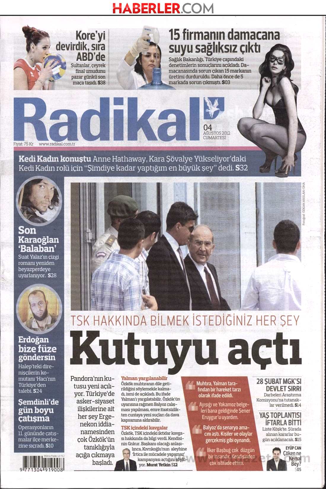 «Άνοιξε το κουτί της Πανδώρας» είναι ο τίτλος της Radikal σχετικά με την ανάκριση του Οζκιόκ. Σύμφωνα με την τουρκική εφημερίδα τώρα ανακαλύπτεται ο τρόπος δράσης του τουρκικού στρατού και γράφει «οι σχέσεις στατού-πολιτικής άρχισε να αποκαλύπτεται όχι τοσο από τις έρευνες για την Εργενεκόν αλλά από τις αποκαλύψεις του Οζκιόκ»