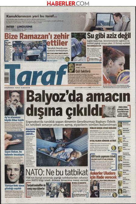 «Στη Βαριοπούλα είχαν βγει εκτός σκοπού» είναι ο τίτλος της Τaraf και αναφέρεται στις δηλώσεις του πρωην αρχηγού των τουρκικών Ενόπλων Δυνάμεων Χιλμί Οζκιόκ ο οποίος ανακρίνεται από την εισαγγελία σχετικά με τη δράση της Εργκενεκόν. «Διαπίστωσα πως στο επικίνδυνο σενάριο είχαν χρησιμοποιηθεί και πολιτικά ονόματα και αυτό ξεπερνούσε κάθε όριο» φέρεται να δηλώνει ο Οζκιόκ.