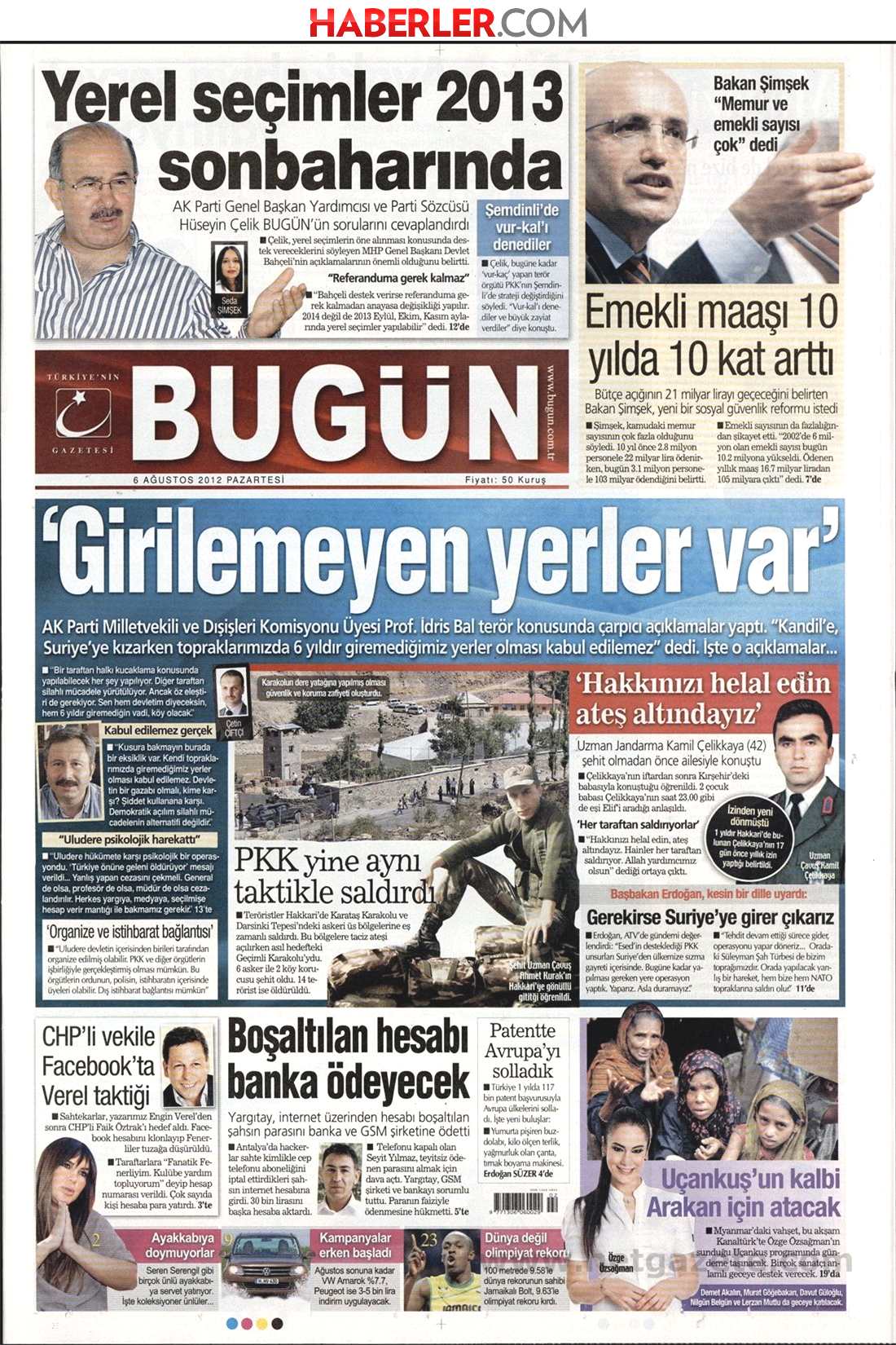 » Υπάρχουν σημεία που δεν μπορούμε 6 χρόνια » είναι ο τίτλος της Bugun.H εφημερίδα φιλοξενεί δηλώσεις του βουλευτή του κυβερνώντος κόμματος ΑΚP Toυρκίας ο οποίος δηλώνει «εδώ μιλάμε για τη Συρία και το όρος Καντίλ στο Βόρειο Ιράκ και κγατηγορούμε γιατί δεν κάνουν κάτι να σταματήσουν το PKK. Εδω έχουμε στην Τουρκία