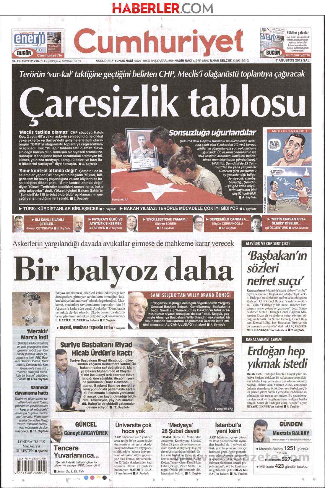 « Με αυτά τα φυλάκια ακόμη θα θρηνούμε πολλά θύματα» είναι ο τίτλος της Vatan που κάνει αναφορά στην τραγική κατάσταση των φυλακίων στα σύνορα. Στην τελευταία επίθεση το φυλάκιο ήταν ένα από τα παλιαότερα όπου σκοτώθηκαν 8 στρατιώτες. « Από το 1985 620 στρατιώτες σκοτώθηκαν σε 86 επιθέσεις του PKK. Εκσυγχρονίστηκαν μόλις τα 60 από τα 206 , τα οποίο έγιναν ισχυρά φρούρια».
