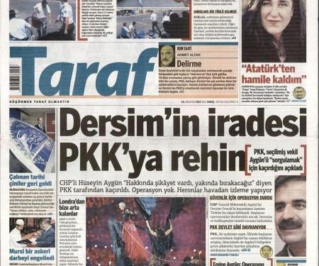 «Η βούληση του Ντέρσιμ, παραδόθηκε στο PKK» είναι ο τίτλος της Taraf. H τουρκική εφημερίδα αναφέρει πως η Κουρδική οργάνωση ανακοίνωσε πως απήγαγε τον τούρκο βουλευτή για να τον «ανακρίνει» καθώς «υπήρχαν παράπονα σχετικά με την πολιτική του δράση». Ο Χασάν Αγκιούν είναι βουλευτής της πόλης Τούντζελι, που η πρώην ονομασία της πόλης αυτής είναι Ντέρσιμ.
