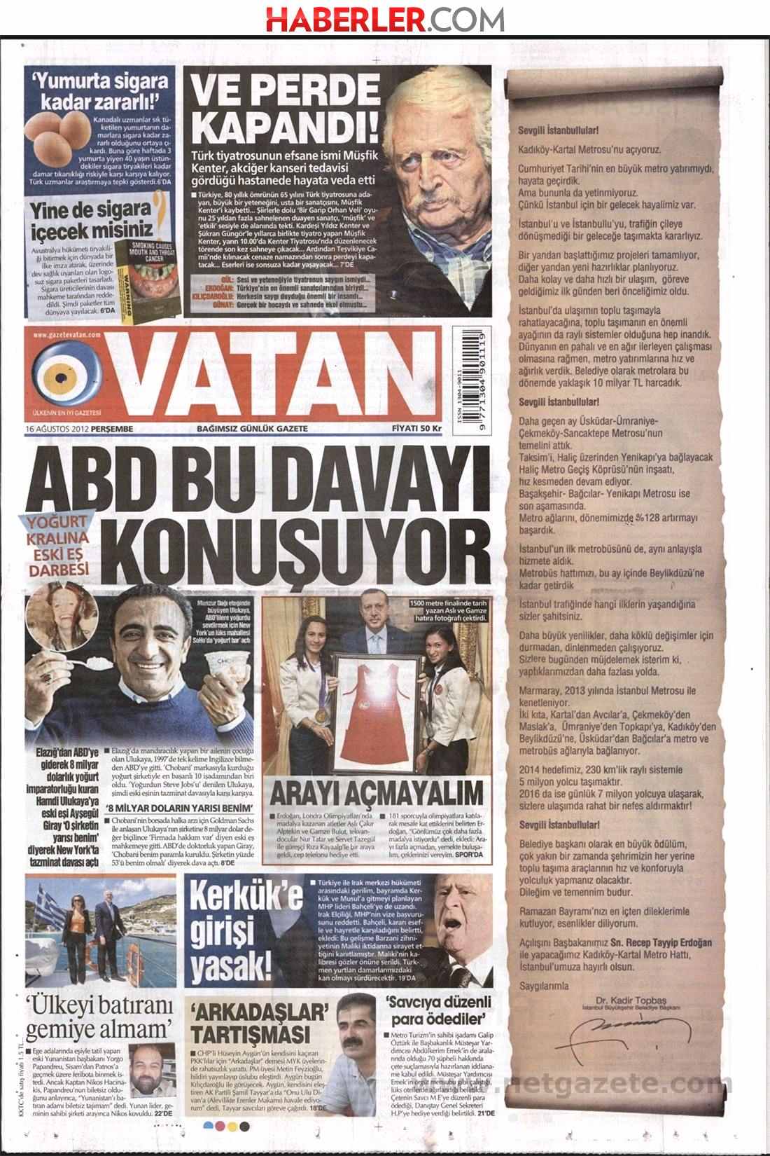« Δεν θα πάρω στο πολοίο αυτών που βύθισε τη χώρα» είναι ένας από τους τίτλους της Vatan που αναφέρεται στην παλιά υπόθεση της παραίτησης του καπετάνιου του πλοίο να μεταφέρει τον Γιώργο Παπανδρέου από τη Σάμο στη Πάτμο. Η τουρκική εφημερίδα φαίνεται πως έχει αντιληφθεί την είδηση μετα από 15 ημέρες!
