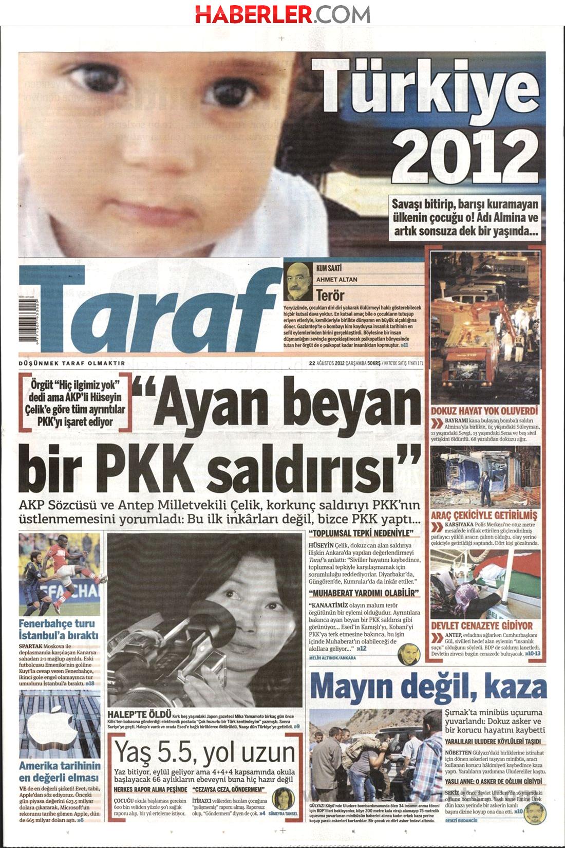 « Είναι ξεκάθαρο χτύπημα του PKK» είναι ο τίτλος της εφημερίδας Taraf. H τουρκική εφημερίδα αναφέρεται σε δηλώσεις του αντιπροέδρου του Κόμματος Δικαιοσύνης και Ανάπτυξης Ομέρ Τσελίκ. Ο ίδιος αναφέρει πως « δεν είναι η πρώτη φορά του το PKK αρνείται τέτοιο χτύπημα, κατά την άποψη μας αυτή έκαναν το χτύπημα» αναφέρει ο ίδιο.