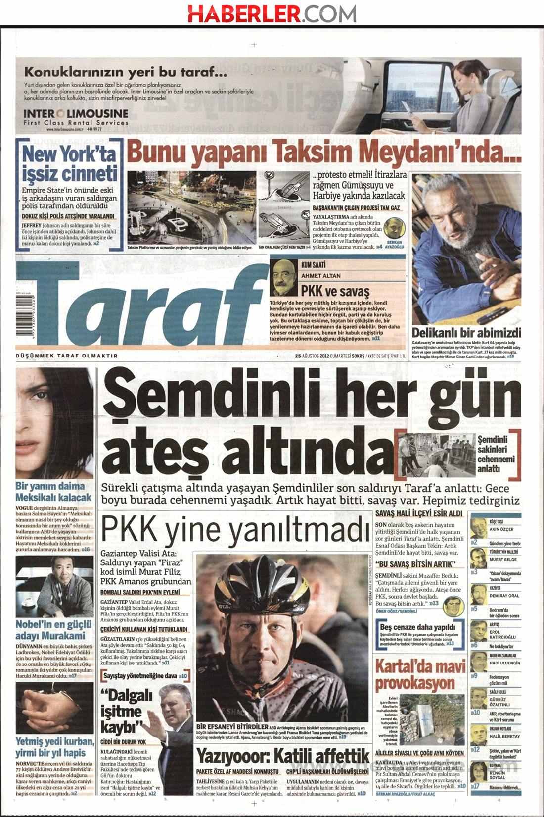 «Οι κάτοικοι του Σεμντίνλι είναι καθημερινά κάτω από τα πυρά» είναι ο τίτλος της Taraf. H τουρκική εφημερίδα αναφέρει πως οι κάτοικοι της πόλης της Νοτιοανατολικής Τουρκίας έχουν κουραστεί από τις καθημερινές μάχες στην περιοχή τους. Οι κάτοικοι δηλώνουν στην εφημερίδα «η ζωή μας πια τελείωσε. Εδώ υπάρχει πόλεμος».