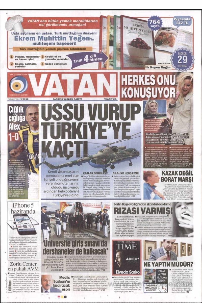 H τουρκική εφημερίδα Vatan αποκαλύπτει πως κυβερνήτης ελικοπτέρου του στρατού της Συρίας αγνοώντας τις εντολές των ανωτέρων του για βομβαριδσμό των επαναστατών, απογειώθηκε από τη βάση του την οποία και βομβάρδισε και αμέσως μετά πέρασε τα σύνορα και προσγειώθηκε στην Τουρκία!