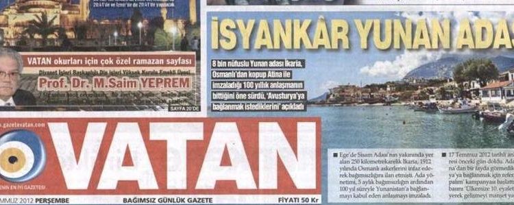 Προκλητικό δημοσίευμα από την τουρκική εφημερίδα Vatan στο θέμα που πρωτοδημοσίευσε μια εφημερίδα της Αυστρίας σχετικά με την Ικαρία.