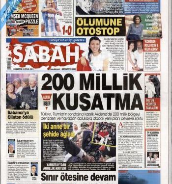 «Αποκλεισμός 200 μιλίων» είναι ο τίτλος της τουρκικής εφημερίδας Sabah η οποία αναφέρει πως η Άγκυρα έχει σαν δόγμα « η ΑΟΖ της Τουρκίας επεκτείνεται στα 200 μίλια». Η τουρκική εφημερίδα αναφέρει ότι το Πίρι Ρείς ξεκίνησε το ταξίδι του με αρχικό στόχο τις έρευνες στο όριο των 12 μιλίων του «Ψευδοκράτους» αλλά αναφέρει πως σε περίπτωση κριθεί «αναγκαίο» το ερευνητικό σκάφος θα κάνει έρευνες και στις νοτιοδυτικές ακτές τις Κύπρου. Ένα σημείο που συμπίπτει με την περιοχή ερευνών της Κυπριακής Δημοκρατίας. Η Sabah τονίζει πως το τουρκικό Επιτελείο εξετάζει το ενδεχόμενο της εγκατάστασης τουρκικών F-16 στα Κατεχόμενα.