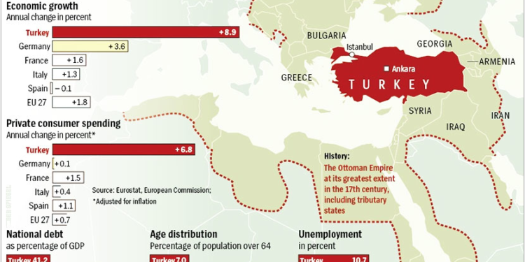 Ο χάρτης που δημοσιεύει το περιοδικό αποτυπώνει αυτά τα οικονομικά στοιχεία που δείχνουν πράγματι ότι η Τουρκία βρίσκεται σε φάση απογείωσης. Το ερώτημα είναι αν θα καταφέρει να μείνει στον αέρα.