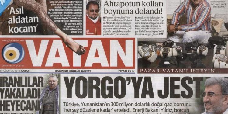 «Κίνηση καλής θέλησης στον Γιώργο» είναι ο τίτλος της τουρκικής εφημερίδα VATAN , που κάνει αναφορά στις δηλώσεις του Υπουργού Ενέργειας Τανέρ Γιλντίζ, ο οποίος ανακοίνωσε πως η Τουρκία θα αναβάλλει την είσπραξη του χρέους ύψους 300 εκατομμυρίων δολαρίων, μέχρι να διορθωθεί η κατάσταση της οικονομίας και για το χρέος αυτό δεν θα αποταθεί στα διεθνή δικαστήρια»! Το χρέος αυτό έχει προκύψει από διαφορές στην τιμή του φυσικού αερίου, που οι γείτονες μας υποστηρίζουν ότι η Ελλάδα δεν μπορεί να το πληρώσει λόγω της τραγικής κατάστασης της οικονομίας.