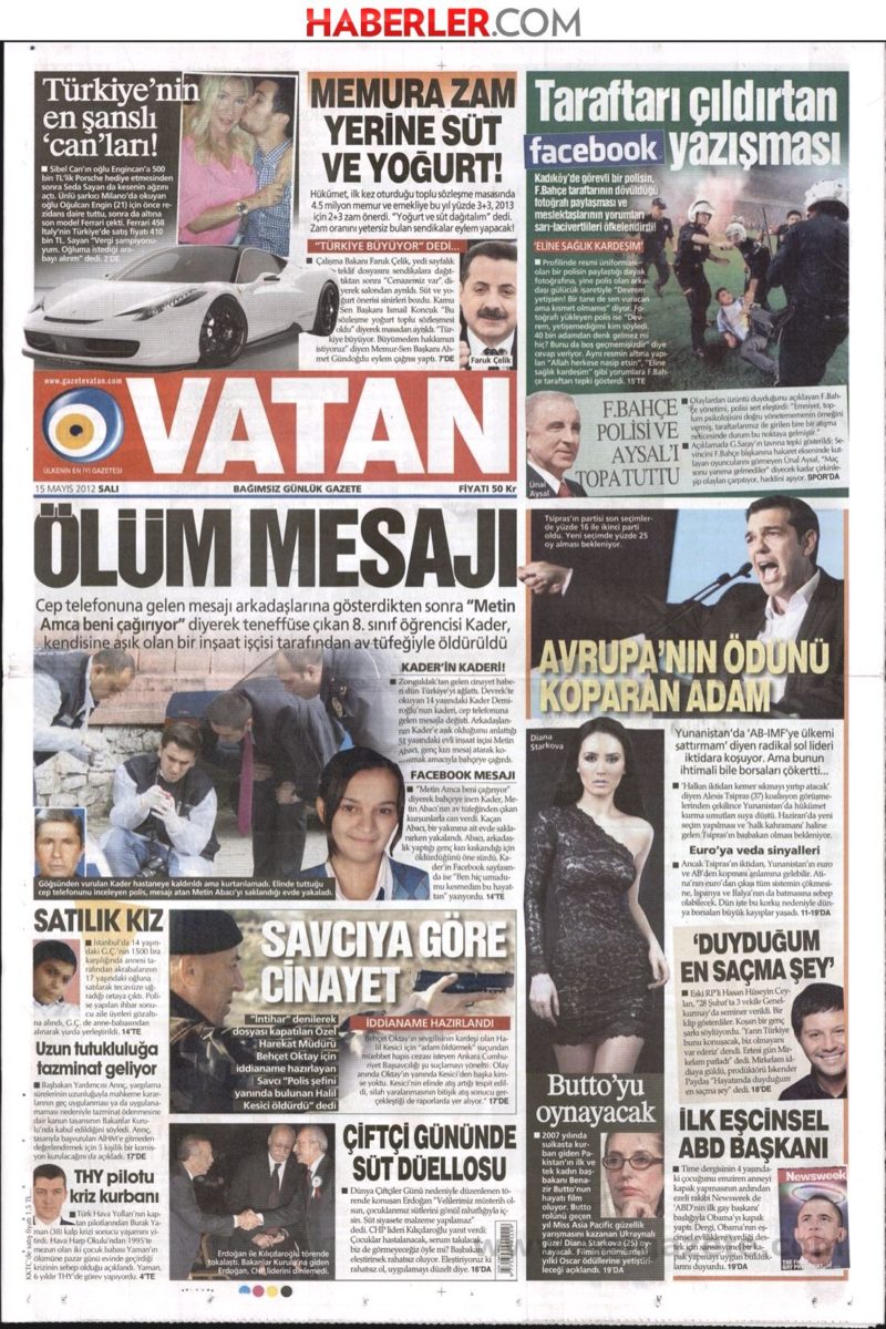 Πρωτοσέλιδο αφιέρωμα κάνει τον Αλέξη Τσίπρα η εφημερίδα Vatan. “ O άνθρωπος που τρόμαξε την Ευρώπη» έχει ως τίτλο η τουρκική εφημερίδα που αναφέρει πως ο ηγέτης του ΣΥΡΙΖΑ δηλώνει πως « δεν θα ξεπουλήσει τη χώρα του στο ΔΝΤ και στην Ε.Ε», έρχεται στην εξουσία. Η Vatan αναφέρει πως σε περίπτωση που γίνουν εκλογές τον Ιούνιο αναμένεται ο Τσίπρας, ο οποίος θεωρείται ως «λαϊκός ήρωας» να αναλάβει την εξουσία