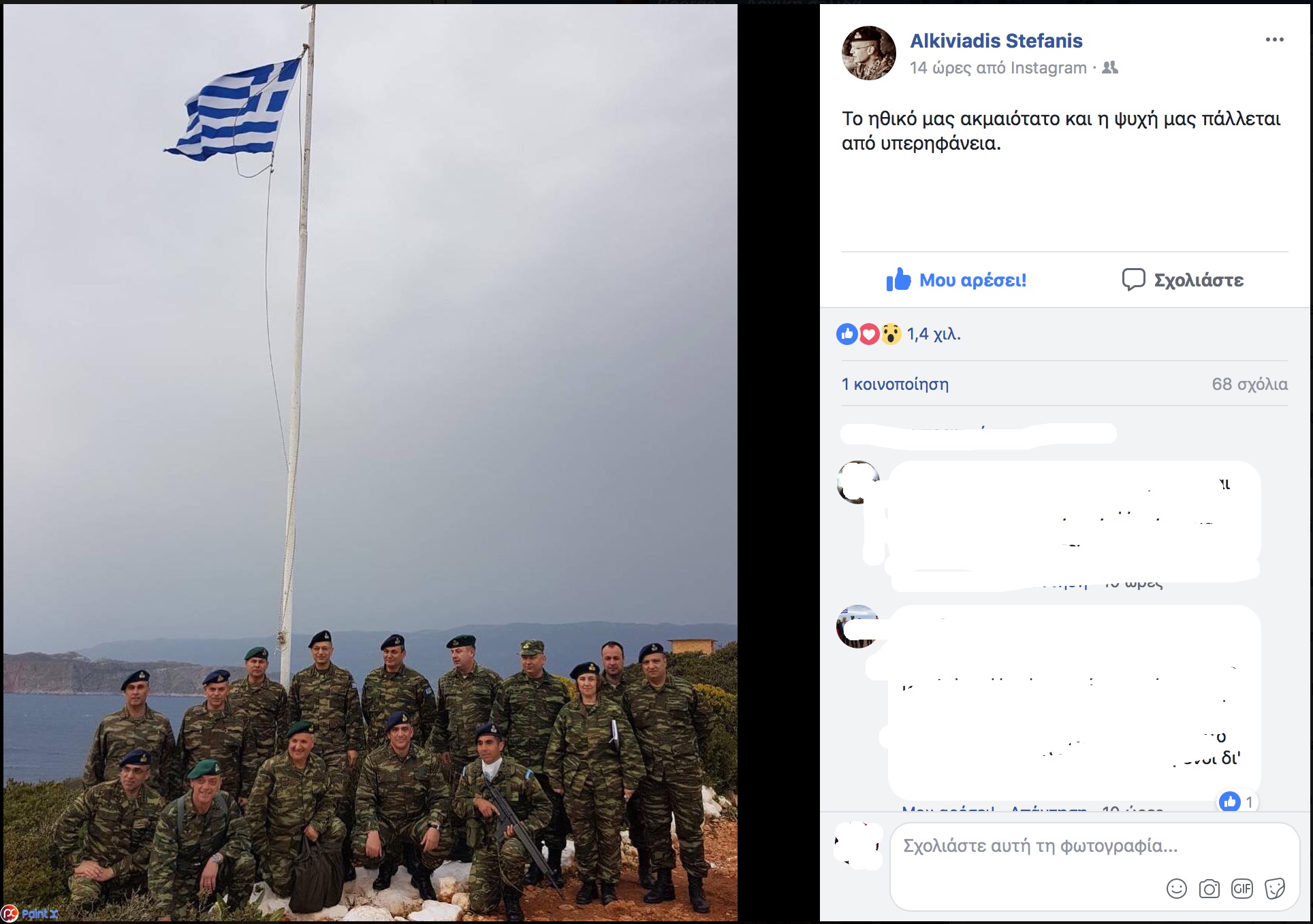 «Το ηθικό μας ακμαιότατο και η ψυχή μας πάλλεται από υπερηφάνεια.» είναι η λεζάντα με την οποία συνόδευσε τη φωτογραφία με τους ανώτερους αξιωματικούς που τον συνόδευαν, μεταξύ αυτών ο Διοικητής της ΑΣΔΕΝ, αντιστράτηγος Νικόλαος Μανωλάκος, αλλά και τα στελέχη της δύναμης που υπηρετεί στην εσχατιά του Αιγαίου.