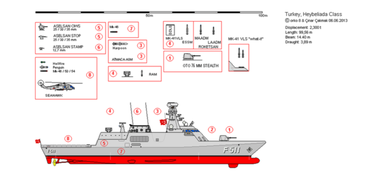 α. TCG Heybeliada – F511 (Xάλκη, το 2ο μεγαλύτερο νησί από τα Πριγκηπονήσια), με ημερομηνία ένταξης την 27 Σεπ 2011.