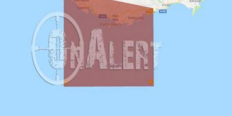 Σύμφωνα με την Τουρκική προαγγελία η άσκηση θα ξεκινήσει στη μια το μεσημέρι και θα ολοκληρωθεί στις πέντε το απόγευμα. Κατά πληροφορίες στο λιμάνι της Μεγίστης έχει καταπλεύσει η Τορπιλάκατος «ΜΥΚΟΝΙΟΣ» του Πολεμικού μας Ναυτικού ενώ σε πλήρη ετοιμότητα βρίσκεται και το ελληνικό σύστημα επιτήρησης.