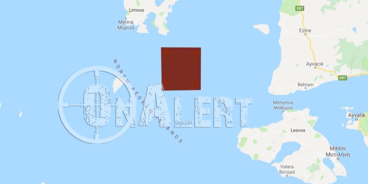 Η ναυτική προναγγελία δεσμεύει παράνομα περιοχή μεταξύ Λήμνου και Λέσβου, για την ερχόμενη Τρίτη 12 Φεβρουαρίου, για χρονικό διάστημα τριών ωρών: Από τη μια έως στις τρεις το μεσημέρι.