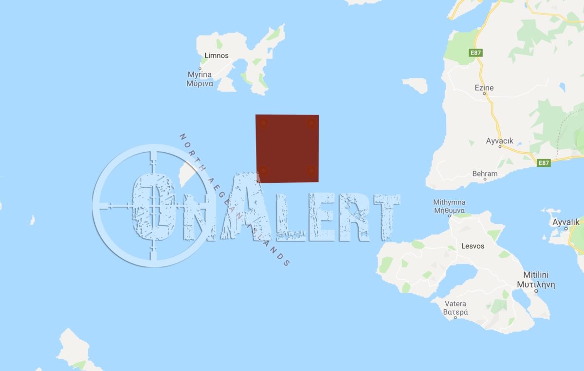 Η ναυτική προναγγελία δεσμεύει παράνομα περιοχή μεταξύ Λήμνου και Λέσβου, για την ερχόμενη Τρίτη 12 Φεβρουαρίου, για χρονικό διάστημα τριών ωρών: Από τη μια έως στις τρεις το μεσημέρι.