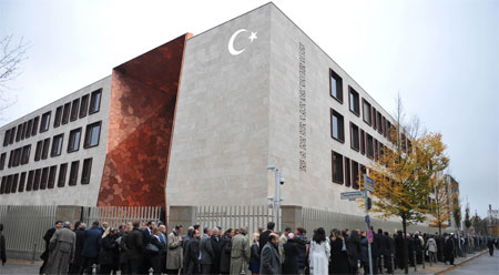 Τη μεγαλύτερη πρεσβεία της Τουρκίας στο εξωτερικό εγκαινίασε το βράδυ της Τρίτης , στο Βερολίνο,ο Ρετζέπ Ταγίπ Ερντογάν. Πάντως εντύπωση προκαλεί πως το νέο κτίριο της πρεσβείας χτίστηκε στο ίδιο οικόπεδο όπου βρίσκονταν η πρεσβεία της Οθωμανικής Αυτοκρατορίας μέχρι το 1922.