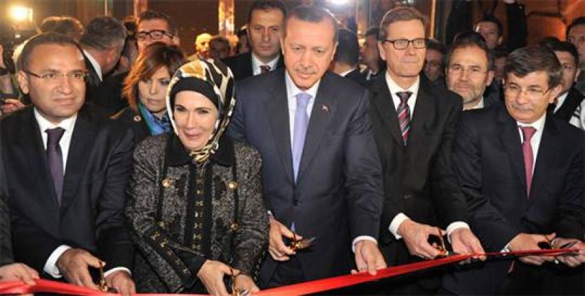 Ο τούρκος πρωθυπουργός συνοδευόμενος από τον τούρκο υπουργό Εξωτερικών Αχμέτ Νταβούτογλου και τον γερμανό υπουργό Εξωτερικών Γκίντο Βεστερβέλε, εγκαινίασε το νέο κτίριο.