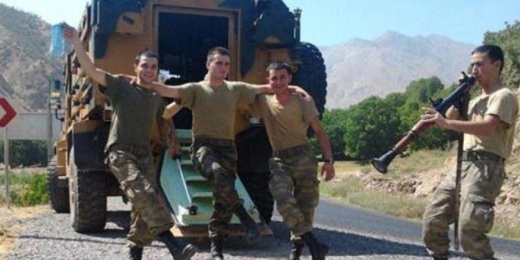 Αντιδράσεις προκαλεί η συγκεκριμένη φωτογραφία με τρεις τούρκοςυ στρατιώτες να φωτογραφίζονται μπροστά σε τεθωρακισμένο όχημα του τουρκικού Στρατού “Kirpi” και ένας απ’αυτούς να κρατά ένα ρουκετοβόλο, και να το υποδύεται πως παίζει κλαρίνο.