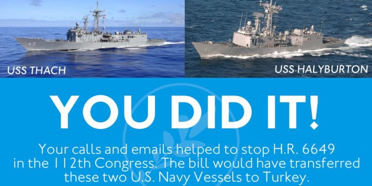 Η αμερικανική Γερουσία μπλόκαρε την παραχώρηση στην Τουρκία δύο φρεγατών κλάσης «O. H.Perry», και συγκεκριμένα τις φρεγάτες USS Halyburton (FFG–40) και USS Thach (FFG–43), παρόλο που σε πρώτο επίπεδο η δωρεάν παραχώρησή τους είχε εγκριθεί από το Κογκρέσο.
