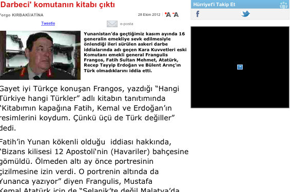 Με το νέο βιβλίο του Φραγκούλη Φράγκου ασχολείται η τουρκική εφημερίδα Hürriyet και στην είδηση χρησιμοποιεί τον τίτλο « εκδόθηκε το βιβλίο του «πραξικοπηματία» αρχηγού».