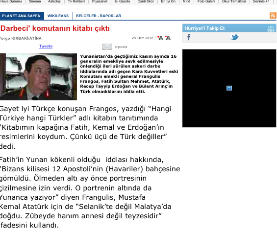 Με το νέο βιβλίο του Φραγκούλη Φράγκου ασχολείται η τουρκική εφημερίδα Hürriyet και στην είδηση χρησιμοποιεί τον τίτλο « εκδόθηκε το βιβλίο του «πραξικοπηματία» αρχηγού».