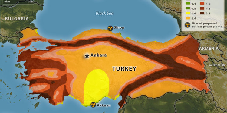 Η προσπάθεια της Άγκυρας να φτιάξει πυρηνικές μονάδες ενέργειες προβληματίζει την Ελλάδα. Όπως φαίνεται από τον χάρτη που δημοσιεύει το Stratfor ο εγκέλαδος και οι σεισμοί είναι ένα πολύ μεγάλο πρόβλημα, το οποίο η Άγκυρα συστηματικά προσπαθεί να υποβαθμίσει για να κερδίσει και την εμπιστοσύνη των τοπικών πληθυσμών που λογικά ανησυχούν.