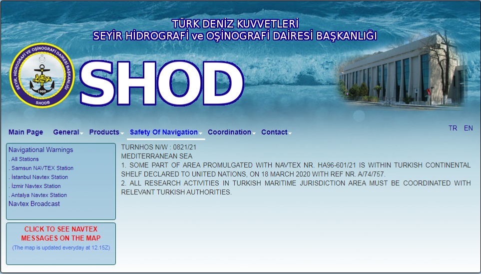 «Απαντώντας» η Τουρκία εξέδωσε αντι-Navtex, ισχυριζόμενη ότι η περιοχή που δεσμεύει για έρευνες του Nautical Geo η Ελλάδα, «βρίσκεται εντός της τουρκικής υφαλοκρηπίδας όπως δηλώθηκε στα Ηνωμένα Έθνη στις 18 Μαρτίου 2020».