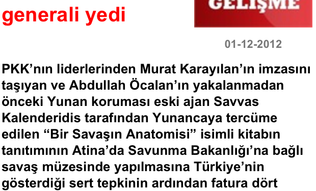 «Το βιβλίο του Καράγιλαν «έφαγε» 4 στρατηγούς στην Ελλάδα» είναι ο τίτλος της τουρκικής εφημερίδας Hürriyet.