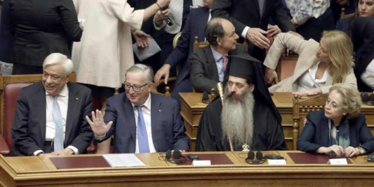 «Η Ελλάδα είναι μεγάλο έθνος, στο οποίο οι Ευρωπαίοι χρωστάμε πολλά. Η Ελλάδα αποτελεί έναν από τους πυλώνες της σταθερότητας στα Βαλκάνια» τόνισε ο πρόεδρος της Ευρωπαϊκής Επιτροπής, Ζαν Κλοντ Γιούνκερ, κατά τη διάρκεια της ομιλίας του σε ειδική συνεδρίαση της Βουλής.