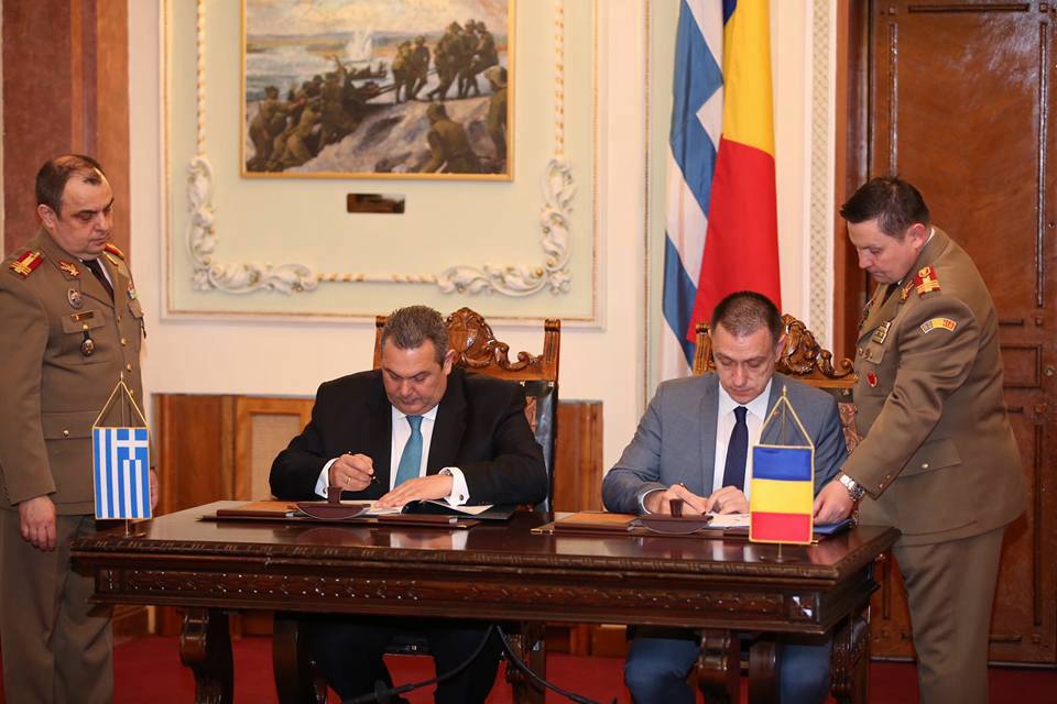 Όσο αφορά την αμυντική συνεργασία Ελλάδας – Ρουμανίας ο κ. Καμμένος δήλωσε οτι «Προς αυτό το στόχο, ο οποίος είναι μόνο η αρχή, προσβλέπουμε σε μια πιο περιεκτική και εκσυγχρονισμένη αμυντική συνεργασία, μέσω της οποίας θα επιτευχθεί περαιτέρω εμβάθυνση της συνεργασίας μας. Μέσω της συνάντησης η οποία οργανώθηκε σήμερα, θα προσφερθούν ευκαιρίες στην αμυντική μας βιομηχανία για περαιτέρω συνεργασία και όφελος, με ορθή χρήση των ευρωπαϊκών αμυντικών χρηματοδοτήσεων και του Ευρωπαϊκού Προγράμματος Βιομηχανικής Ανάπτυξης στον τομέα της Άμυνας» τονίζοντας οτι «Δαπανούμε πολλά χρήματα για την Άμυνα και για τη Συμμαχία. Ωστόσο, να είστε σίγουροι – και αυτό το μήνυμα το στέλνουμε και στην Ευρωπαϊκή Ένωση – ότι είμαστε επίσης έτοιμοι για στενή συνεργασία στον τομέα της αμυντικής βιομηχανίας, ώστε να δημιουργήσουμε θέσεις εργασίας και να ενισχύσουμε την ανάπτυξη της οικονομίας μας. «