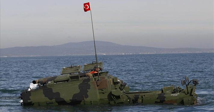 Αμφίβιο εκσκαφέα τουρκικής κατασκευής με σκοπό να ισοπεδώνει το έδαφος στις όχθεις των ποταμών προκειμένου να κάνει ευκολότερη την διάβαση των στρατευμάτων πεζικού , αποκτούν οι τουρκικές Ενοπλες Δυνάμεις.