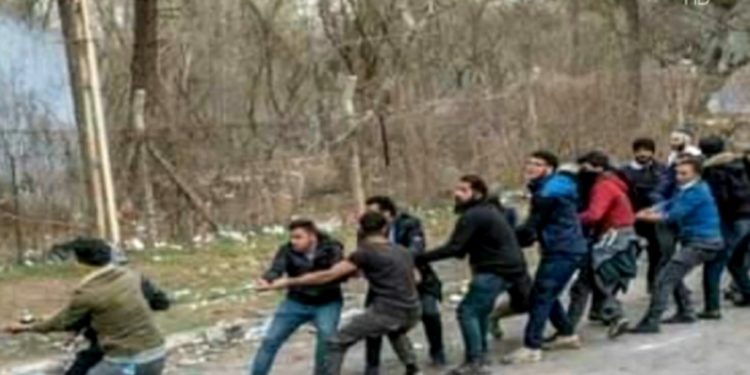 Η εικόνα είναι αποκαλυπτική. Δείχνει τον τρόπο με τον οποίο μετανάστες προσπαθούν να ρίξουν και να ξηλώσουν τον φράχτη για να περάσουν στην Ελλάδα. Χθες το απόγευμα (06-03-2020) και σήμερα το πρωί επιχείρησαν το ίδιο πράγμα.