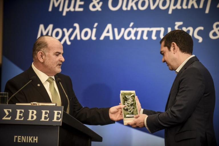 Ο Πρόεδρος της ΓΣΕΒΕΕ Γιώργος Καββαθάς στην 2η Διεθνή Συνάντηση των Αθηνών για τις Μικρομεσαίες επιχειρήσεις έκανε ένα δώρο όλο συμβολισμό στον πρωθυπουργό το οποίο όπως είπε «Για μας σημαίνει συνεργασία για να βγάλουμε όλοι μαζί τη χώρα από το αδιέξοδο και να δώσουμε ελπίδα στην επόμενη γενιά».
