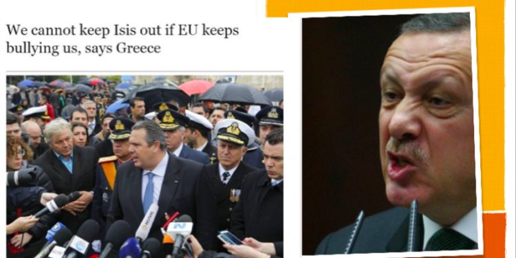 Το να απειλεί ο Ερντογάν να “πλημμυρίσει” την Ευρώπη με πρόσφυγες είναι επιχείρημα. Το να προειδοποιεί ο Έλληνας ΥΕΘΑ Πάνος Καμμένος ότι χωρίς σταθερότητα στην Ελλάδα θα συμβεί μοιραία το ίδιο,είναι απειλή!