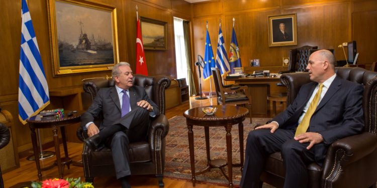 Μετά από τα τηλεφωνήματα στον Νταβούτογλου και στον τούρκο υπουργό Άμυνας ο ΥΕΘΑ Δημήτρης Αβραμόπουλος δέχθηκε σήμερα στο γραφείο του, τον Πρέσβη της Τουρκίας Kerim Uras.